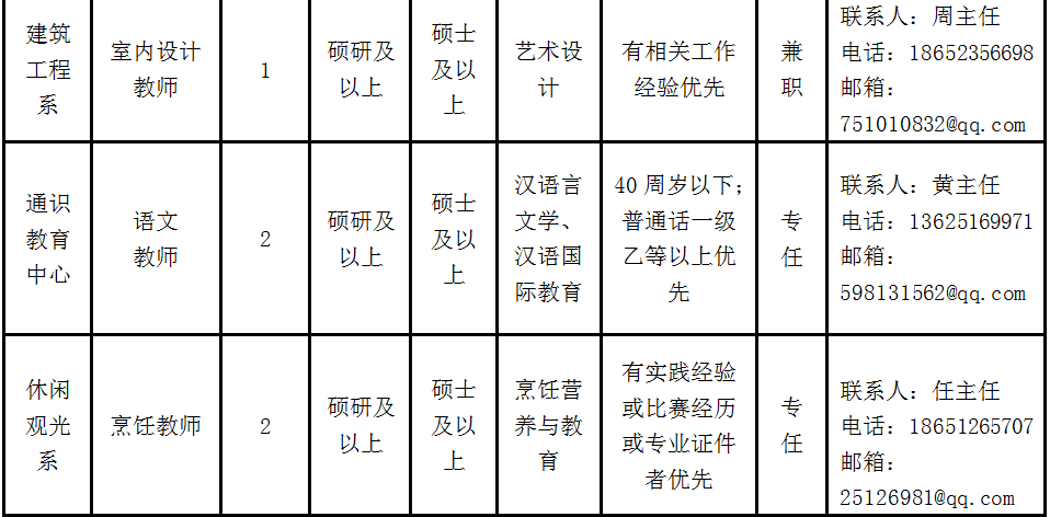 5、退休返聘人员、代课教师及校外兼课、兼职教师根据专业能力、年龄及身体状况等面议。