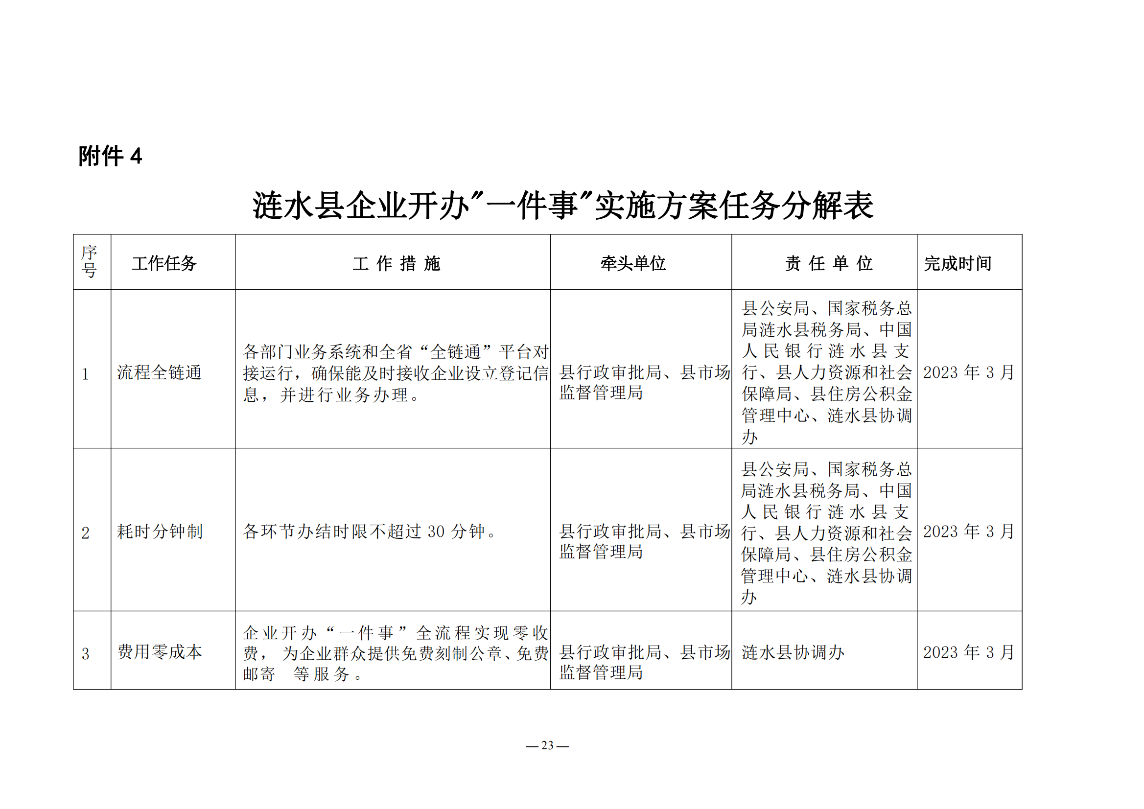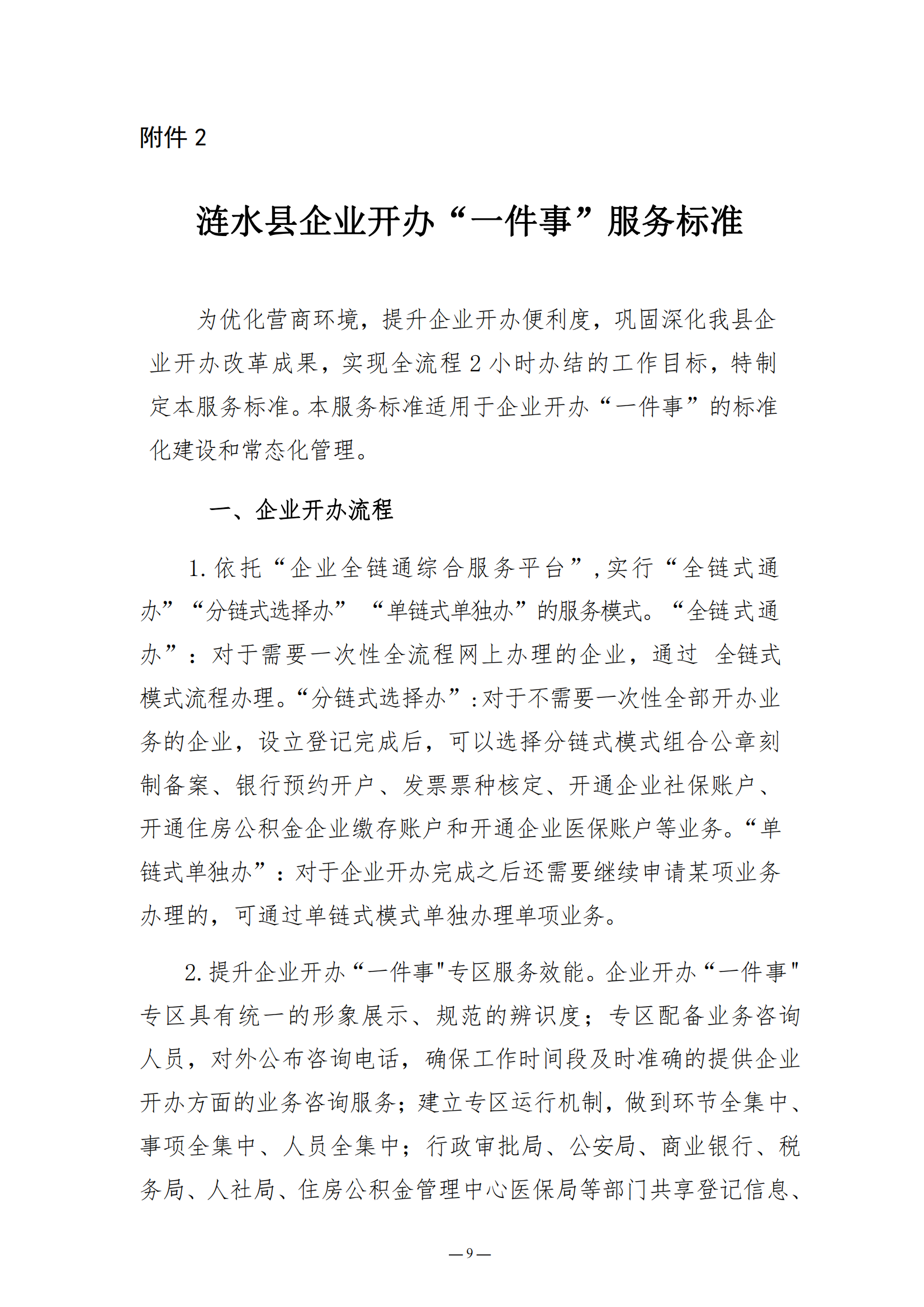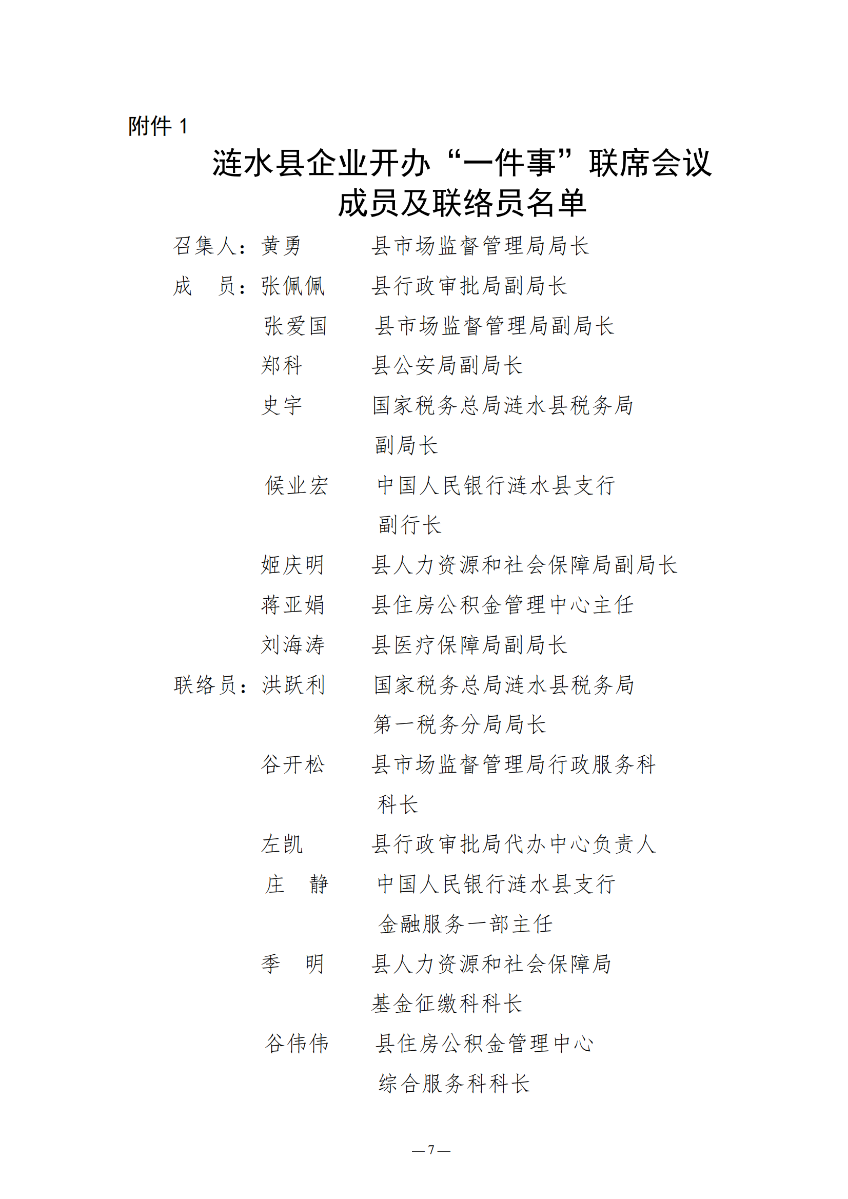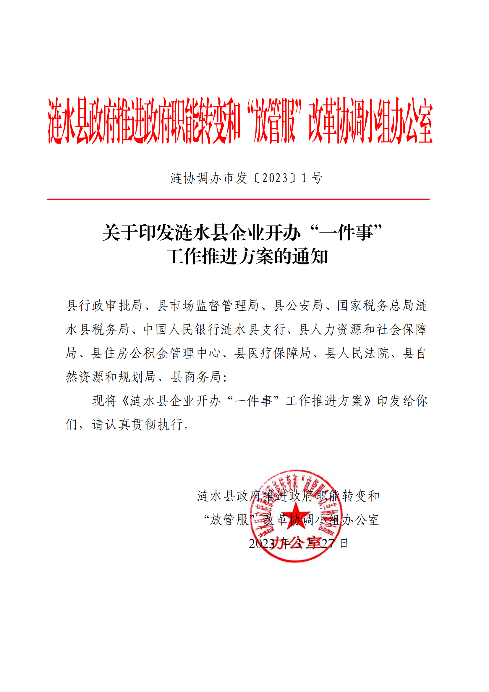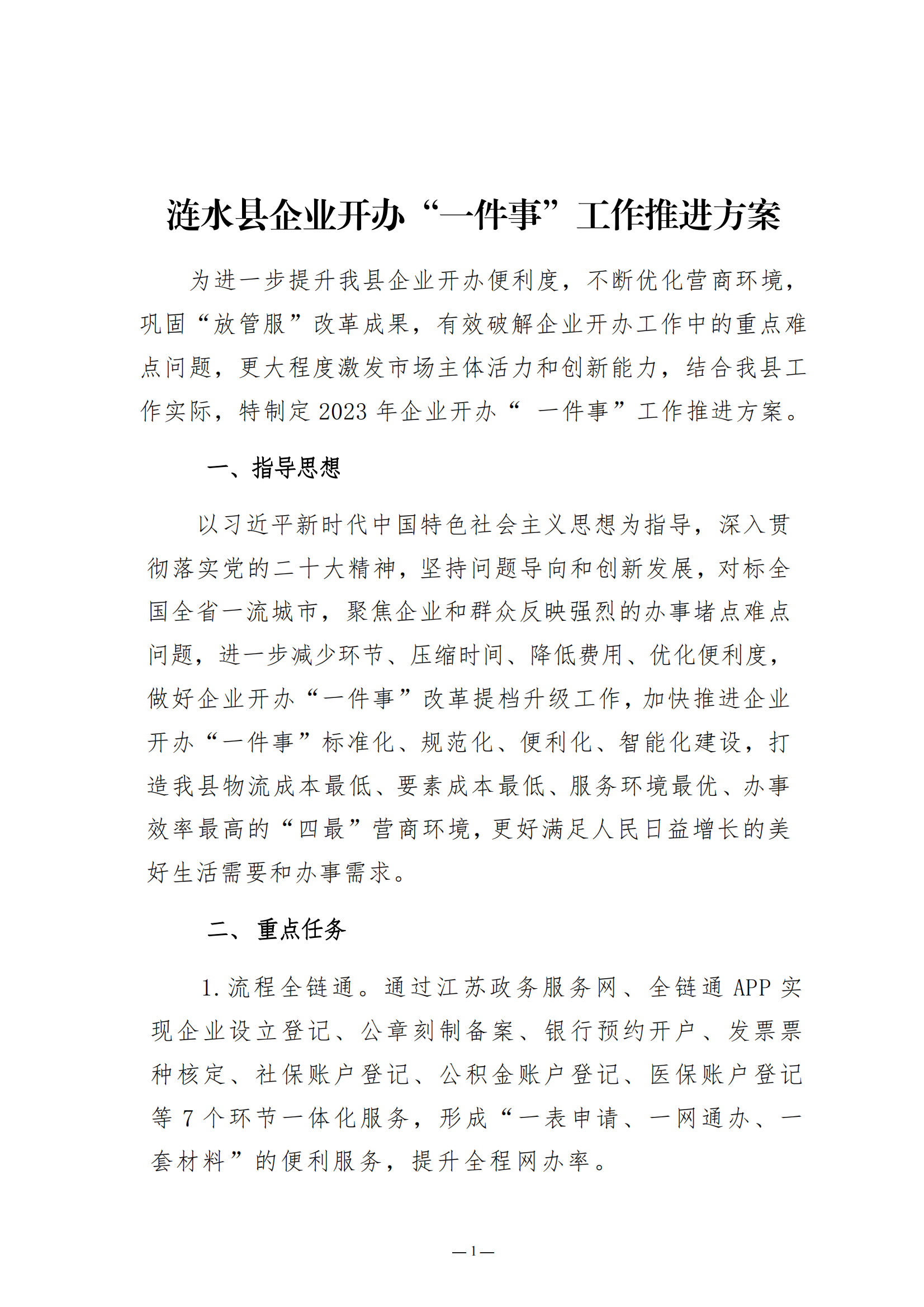 关于印发涟水县企业开办“一件事” 工作推进方案的通知